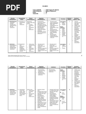 Download rpp bahasa indonesia 11 struktur dan kebahasaan teks negoisasi. Biasanya terdiri dari isi dan bahan ajar yang lama penerapannya tidak ditentukan. Silabus bahasa inggris k13 kelas 8. Download silabus bahasa indonesia smp/mts kelas 9 semester 1 dan 2 kurikulum 2013. Silabus mata pelajaran bahasa indonesia disusun dengan format dan penyajian/penulisan yang sederhana sehingga mudah dipahami dan email.